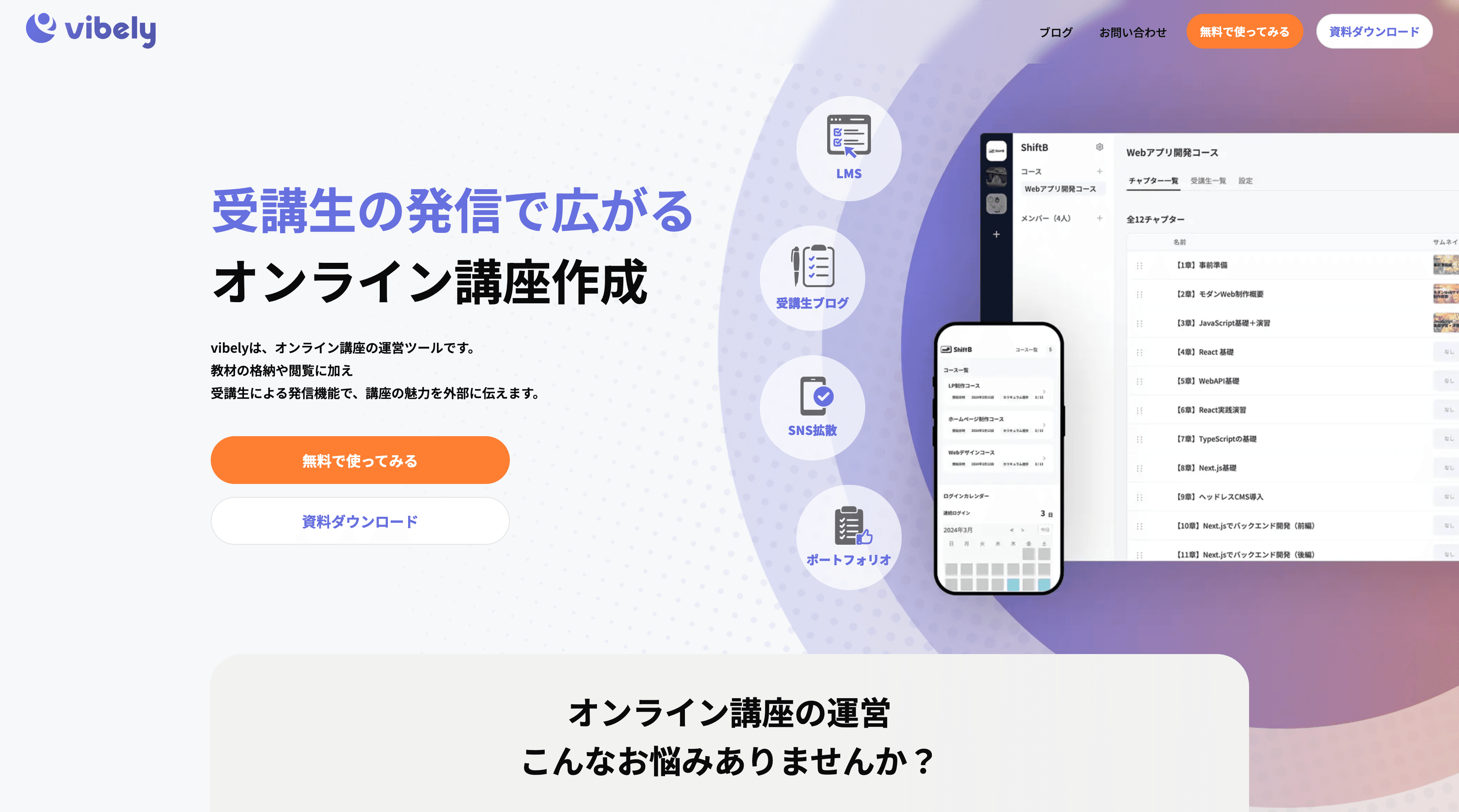 この度、オンライン講座運営者向けの学習管理システム(LMS)「vibely(バイブリー)」を正式にリリースしました。